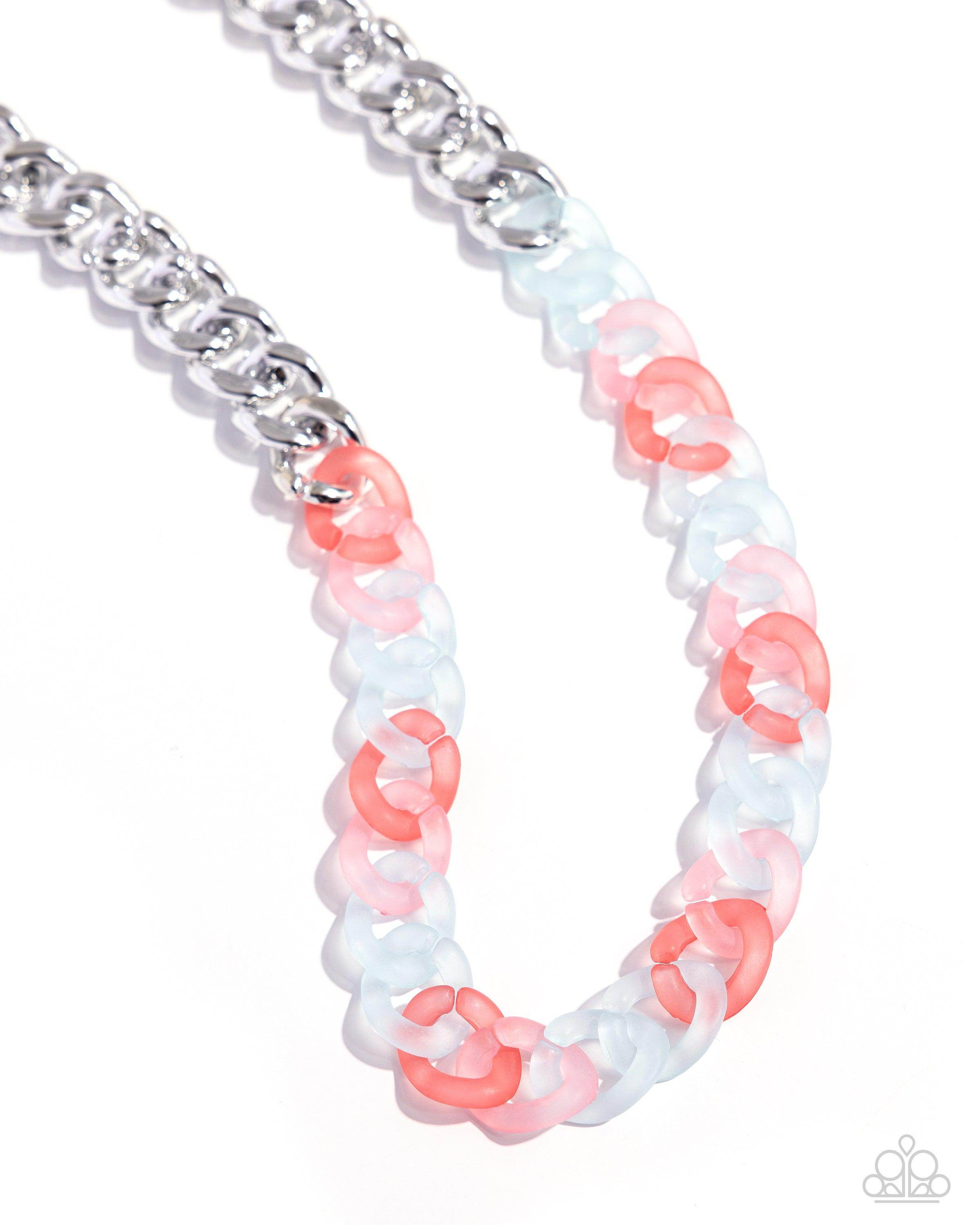 Featuring a kaleidoscope of colors, blue, pink, and coral acrylic rings connect to high-sheen silver curb chain links for a magically multicolored display. Features an adjustable clasp closure.
