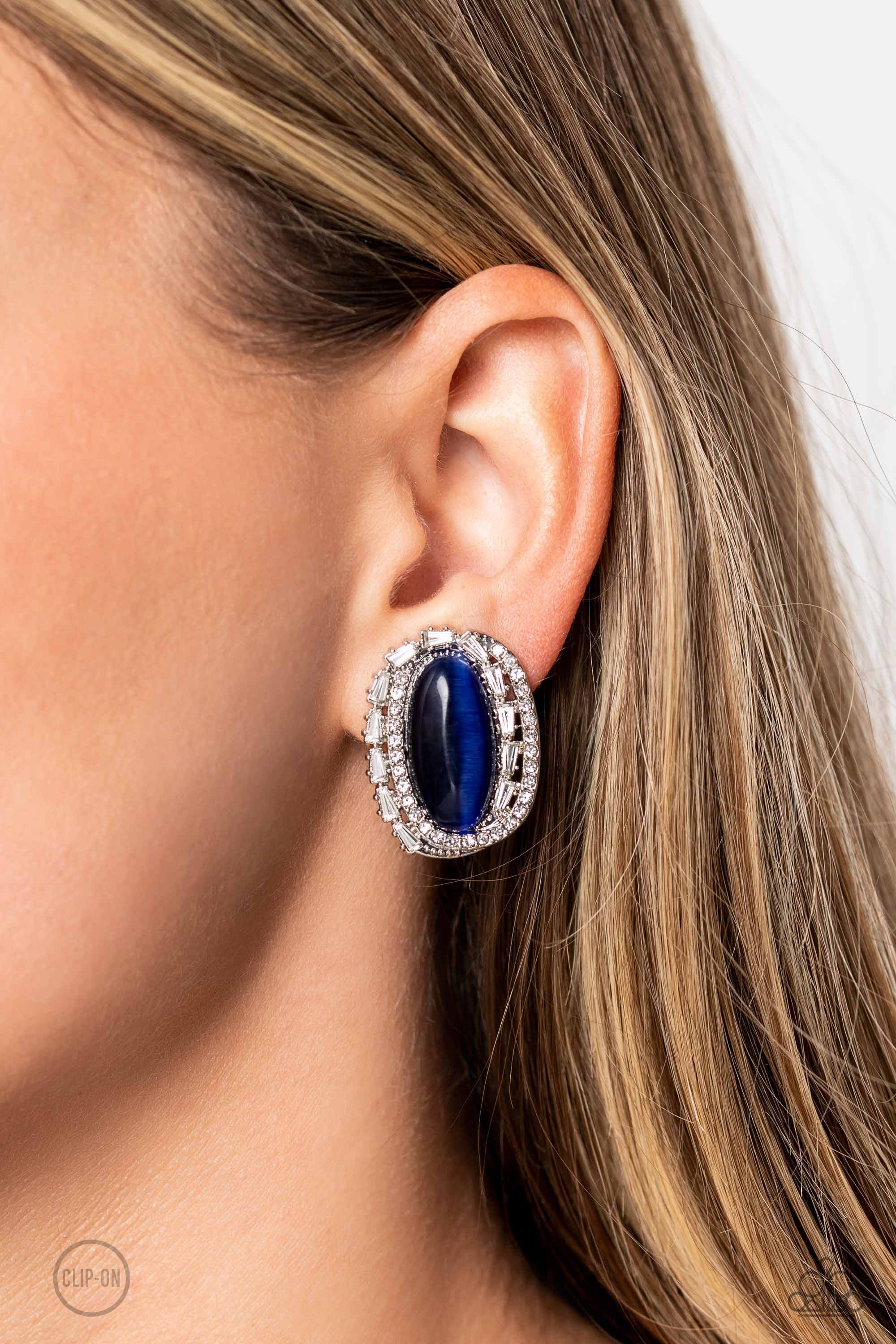 Shimmery Statement - Blue Clip-On Earring-Paparazzi
