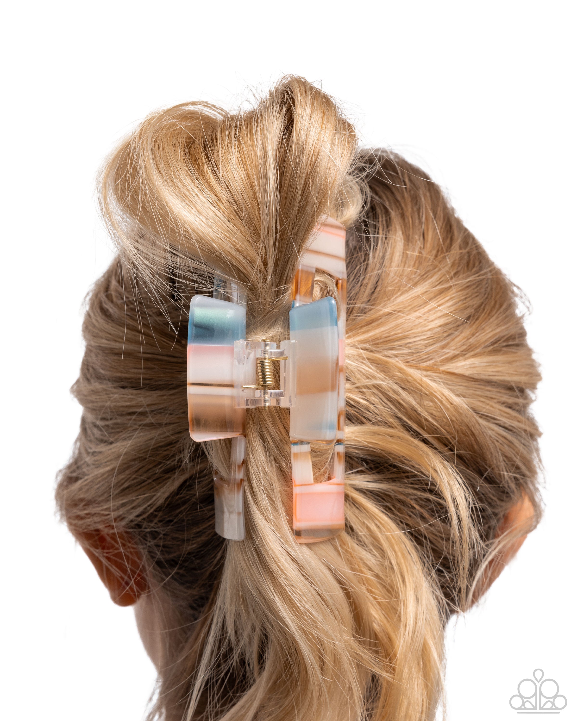 Featuring multicolored paint, a transparently striped claw clip holds the hair away from the face for an on-the-go patterned display. Clip measures approximately 4" in length and 2 1/4" in width.