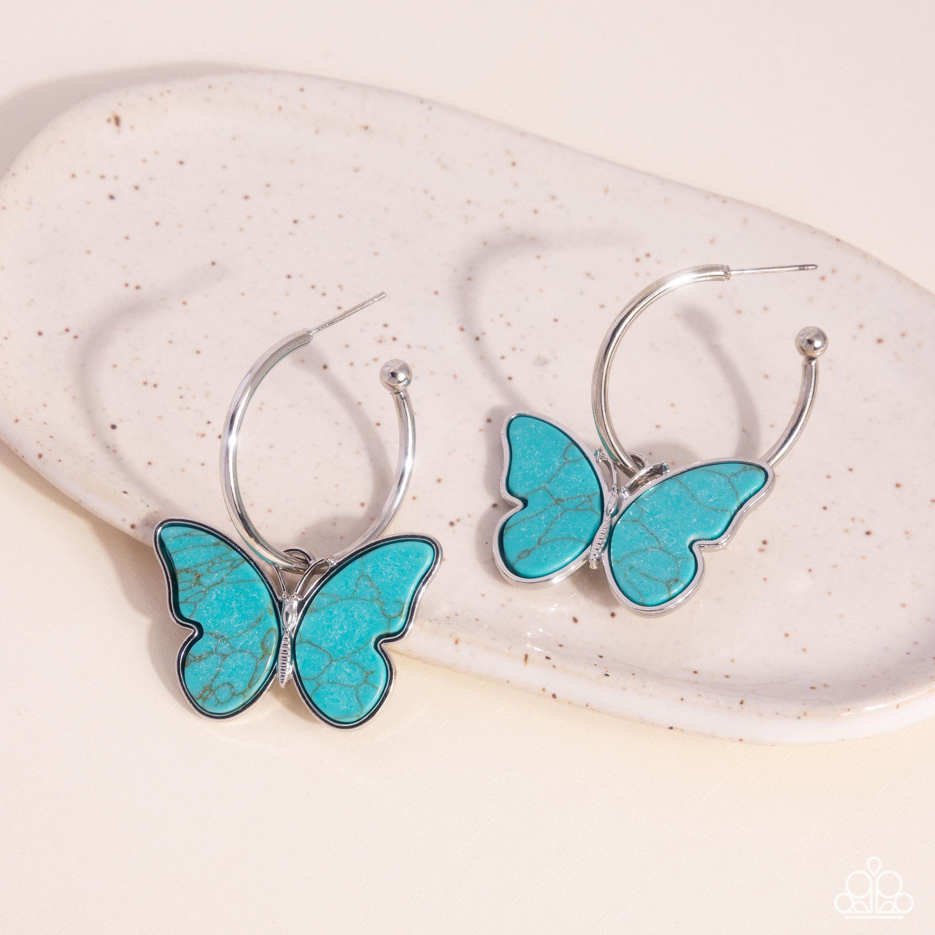 Melodic Mariposa - Blue Stone Post Hoop Earring-Paparazzi