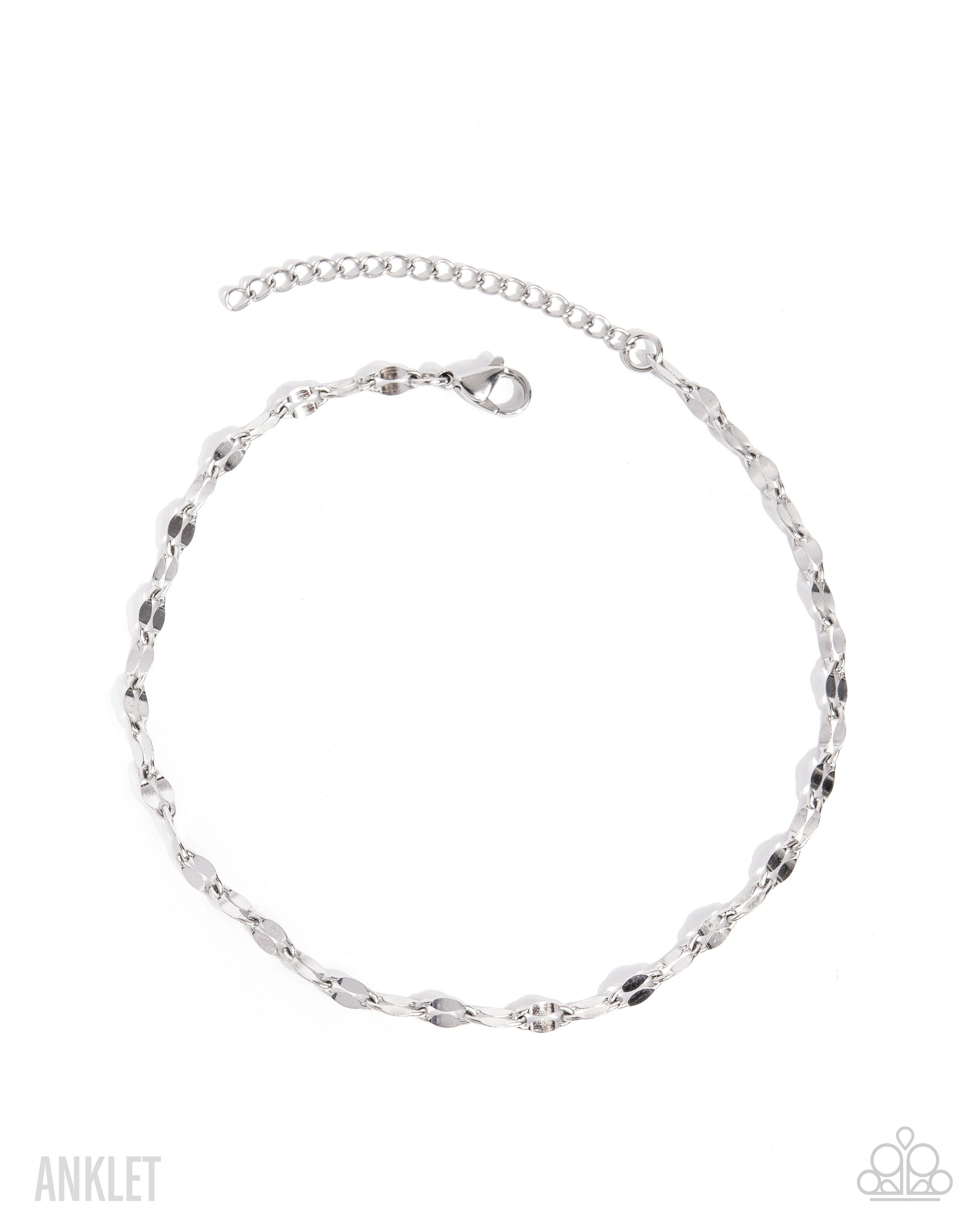 Featuring a glistening hue, abstract stainless steel silver links curl around the ankle for a handcrafted, harmonious look. Features an adjustable clasp closure.